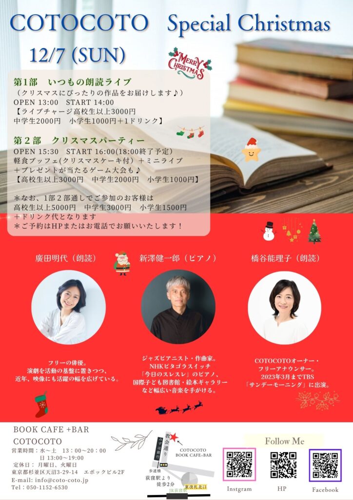 12月7日(日)朗読ライブ&クリスマスパーティーのお知らせ
